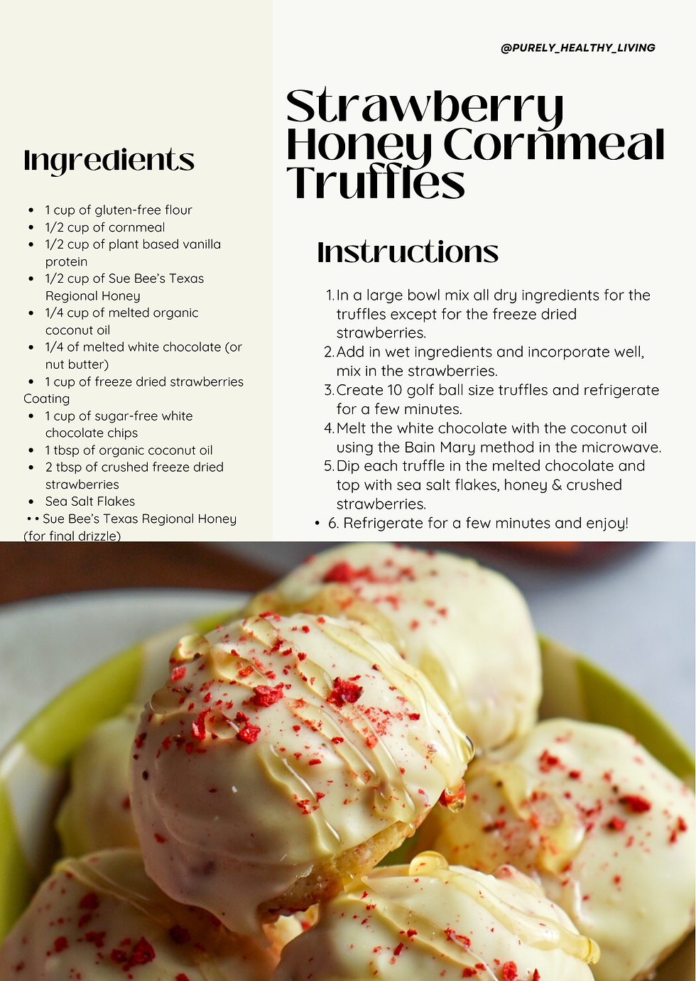 Ingredients for this Strawberry Honey Cornmeal Truffles recipe: